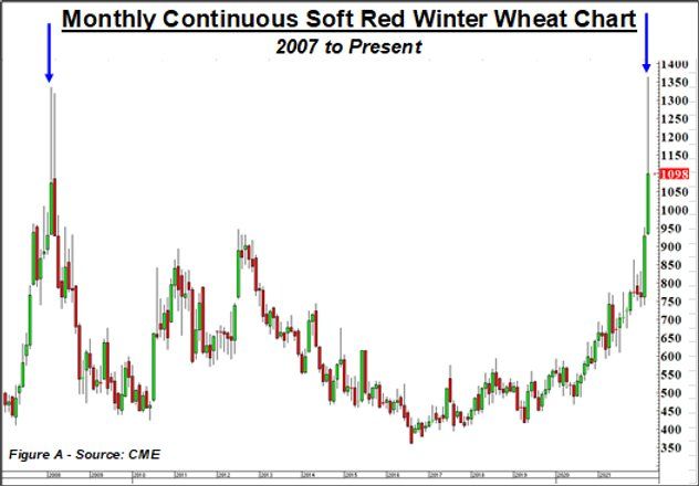 Commodities aren’t a great first-date topic, but they are certainly “in vogue” right now. While the invasion affected nearly all commodities, wheat was the poster child. In previous years, Ukraine and Russia accounted for nearly one-third of the world’s total wheat exports. Therefore, a sharp price move higher was expected. The “take no prisoners” move into new all-time highs, however, was not (fig. A).